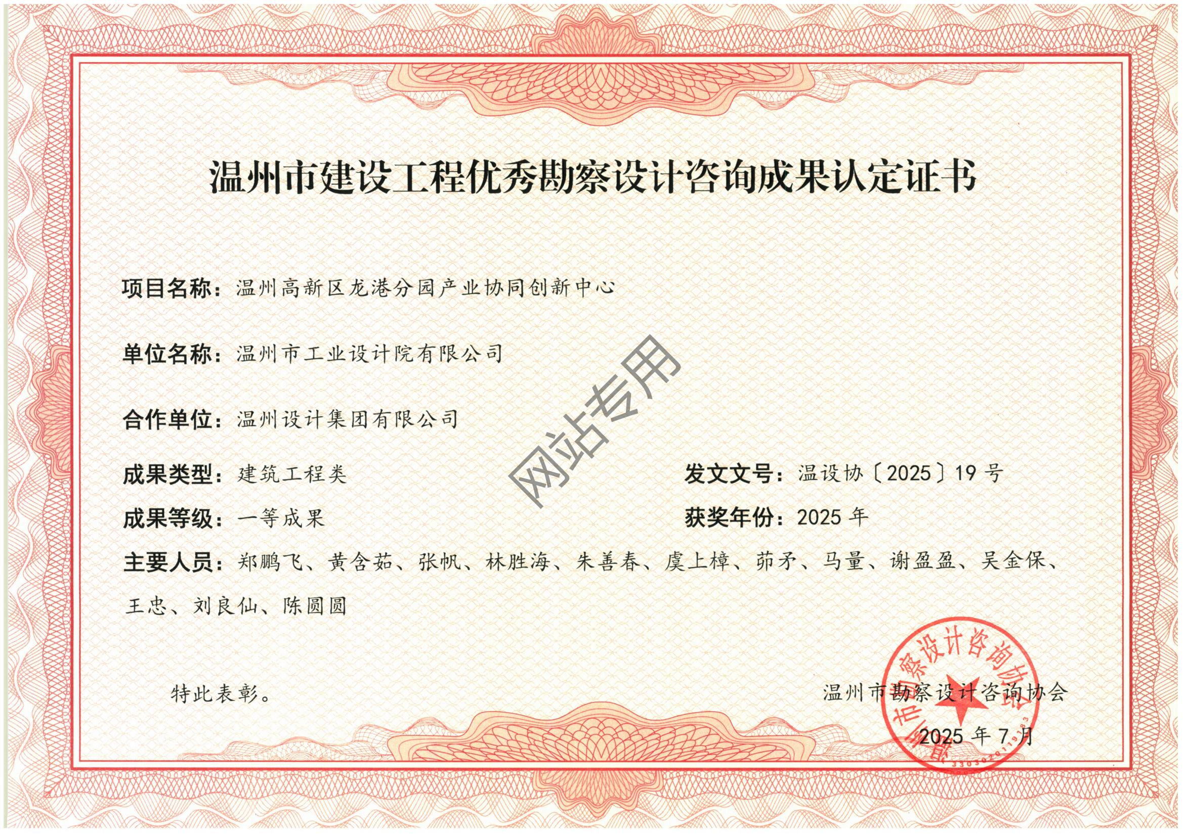溫州高新區(qū)龍港分園產(chǎn)業(yè)協(xié)同創(chuàng)新中心 2025年度“甌江杯”建筑工程類一等獎