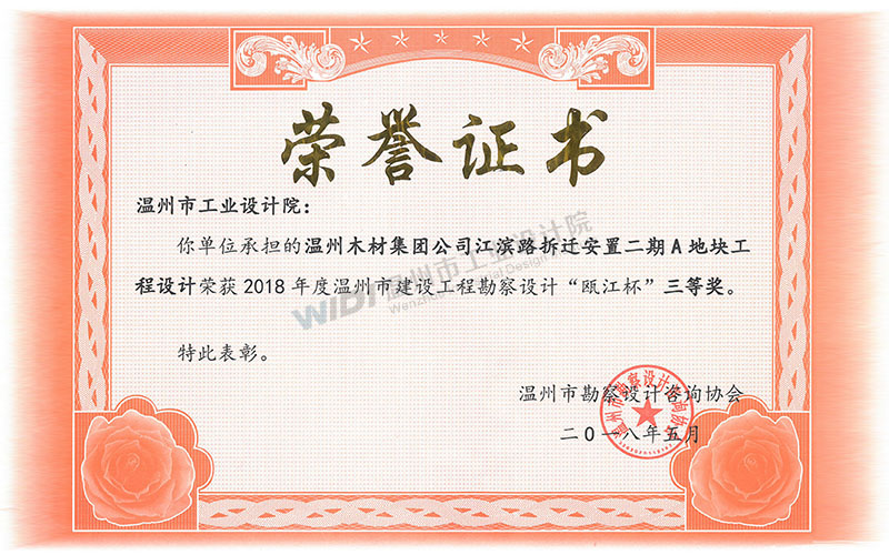 溫州木材集團公司江濱路拆遷安置二期A地塊工程設(shè)計 甌江杯三等獎