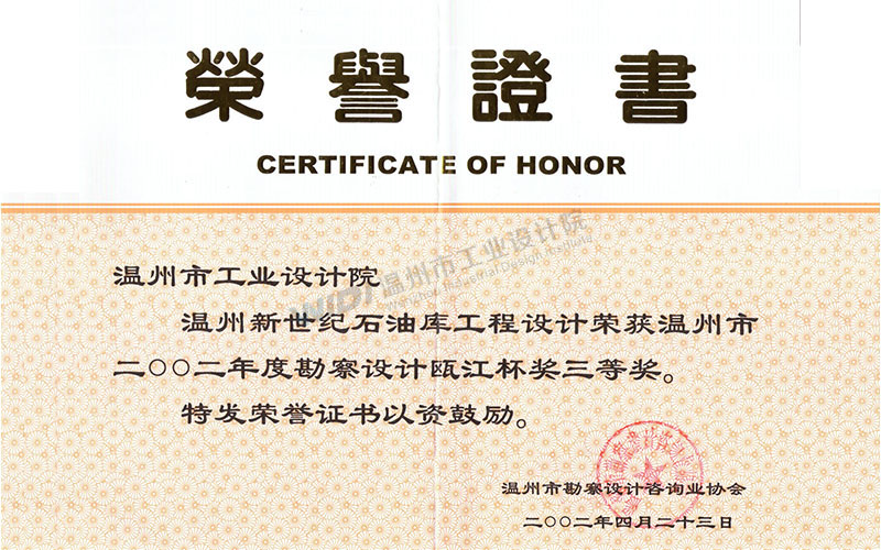 溫州新世紀(jì)石油庫(kù)工程設(shè)計(jì) 甌江杯三等獎(jiǎng)