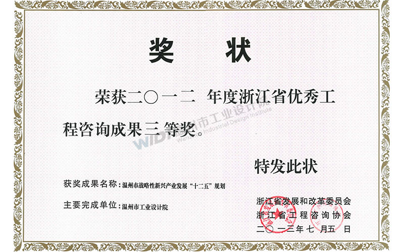 溫州市戰(zhàn)略新興產(chǎn)業(yè)發(fā)展“十二五”規(guī)劃 省優(yōu)秀工程咨詢成果三等獎(jiǎng)