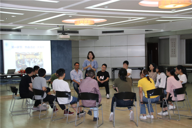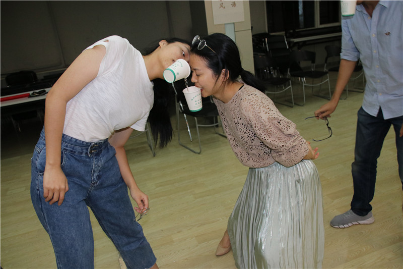 活動(dòng)在勵(lì)志歌曲“追夢(mèng)赤子心”的音樂(lè)聲中拉開序幕。大家在指導(dǎo)老師的引領(lǐng)下,分成二個(gè)小組共同進(jìn)入“大風(fēng)吹”“請(qǐng)讓我為你按摩一下下”“優(yōu)點(diǎn)轟炸”“銜紙杯傳水”